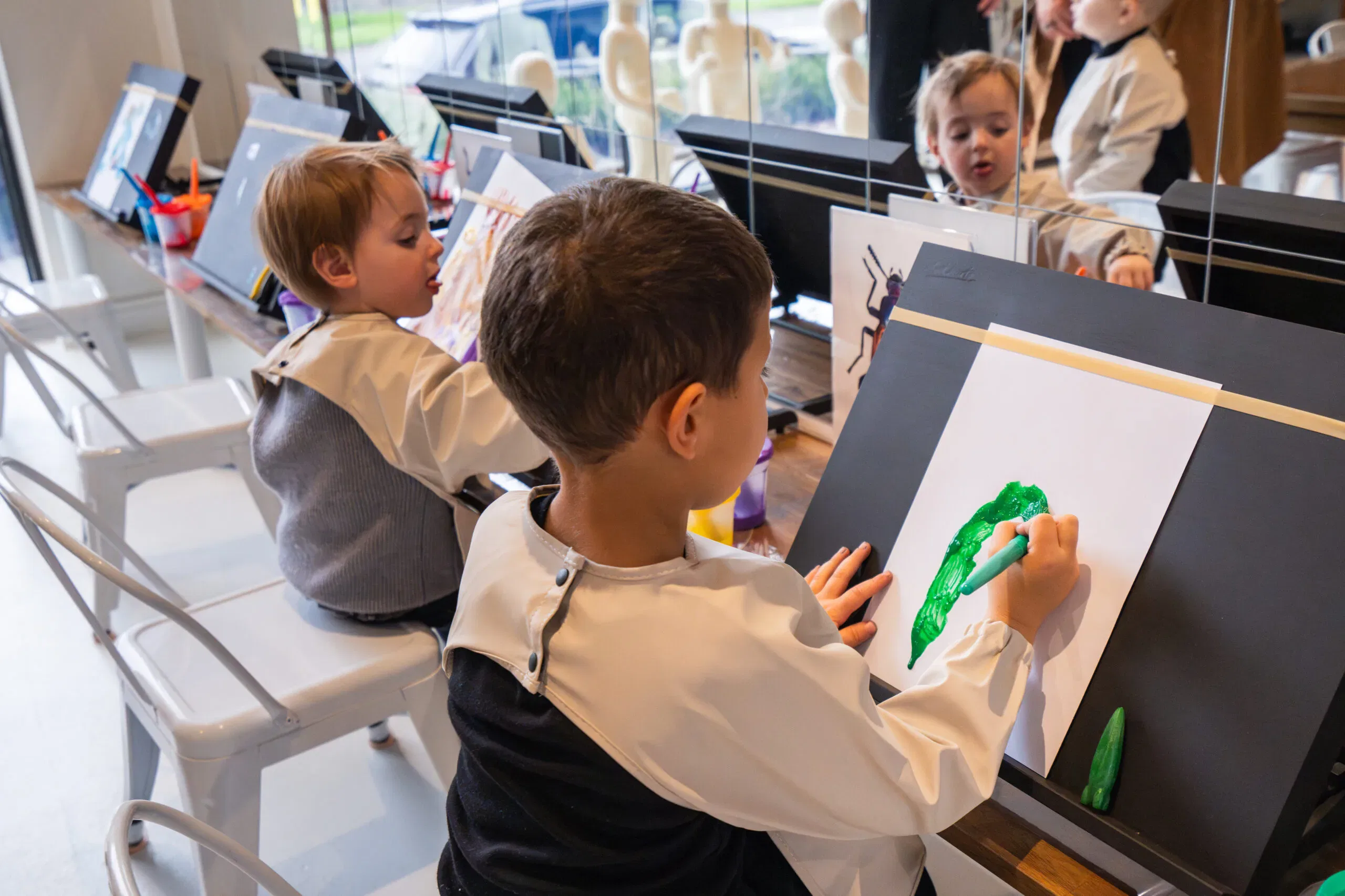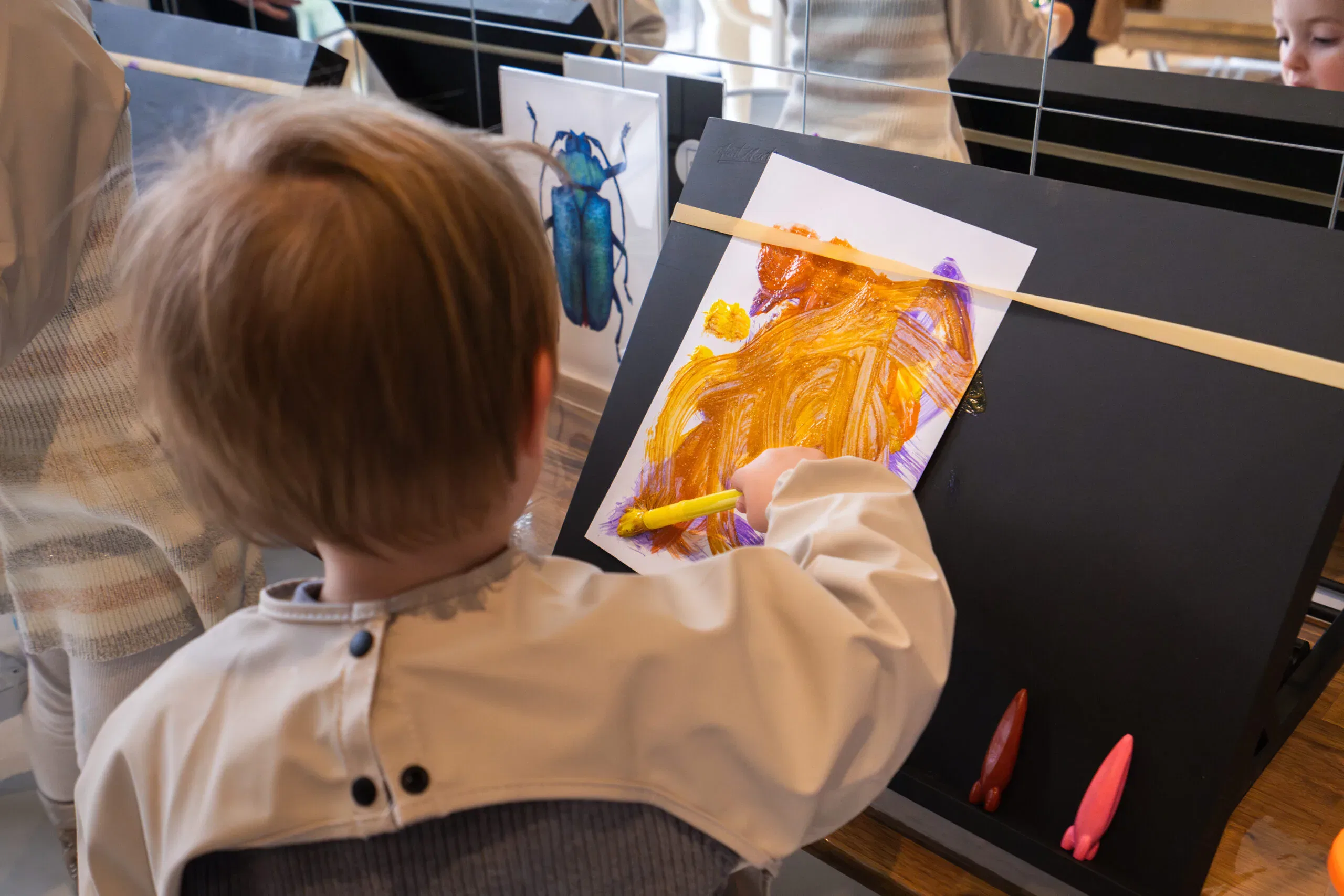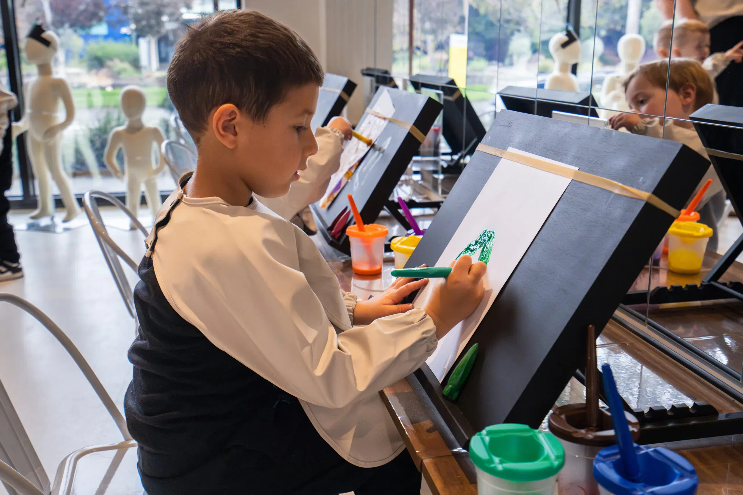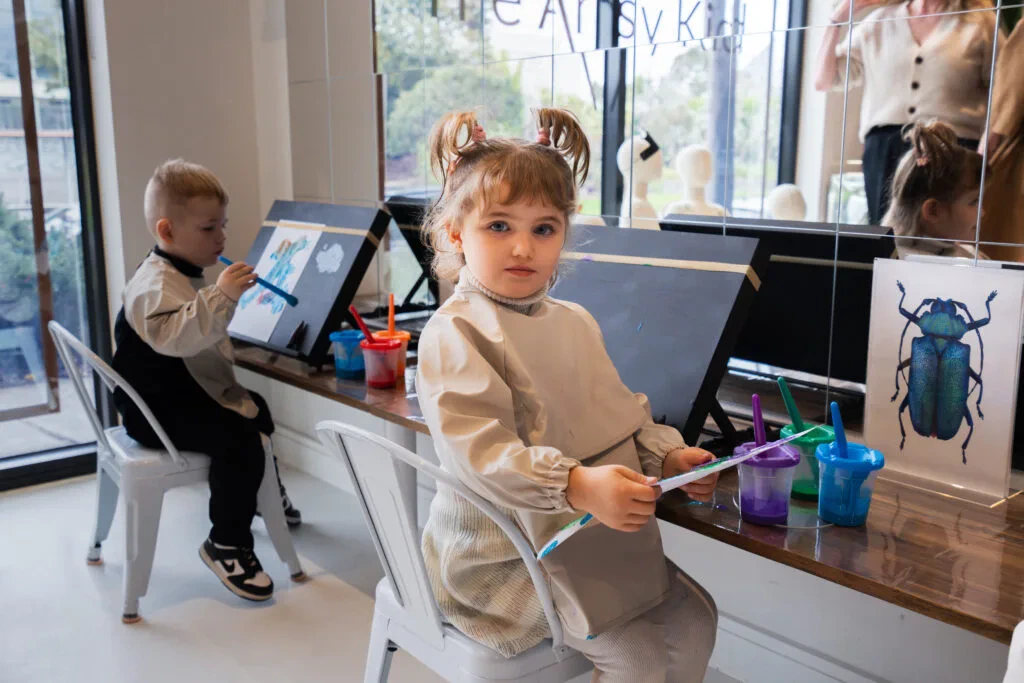 Our Little Artists program develops fine motor skills, teaches colour mixing and collage, and boosts confidence through creative expression.